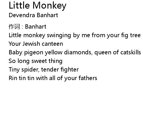 | Little monkey swinging by me from your fig tree | |