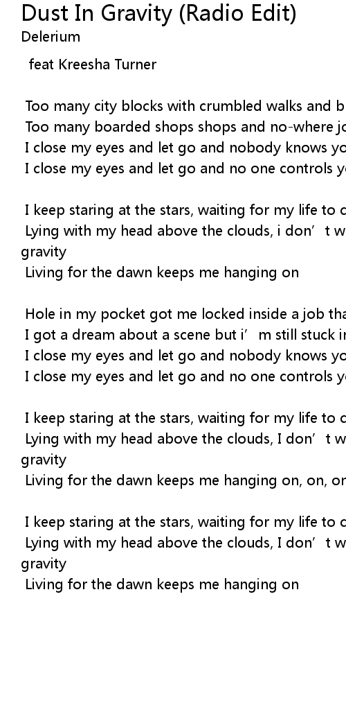 | Song | Dust In Gravity (Radio Edit) |
