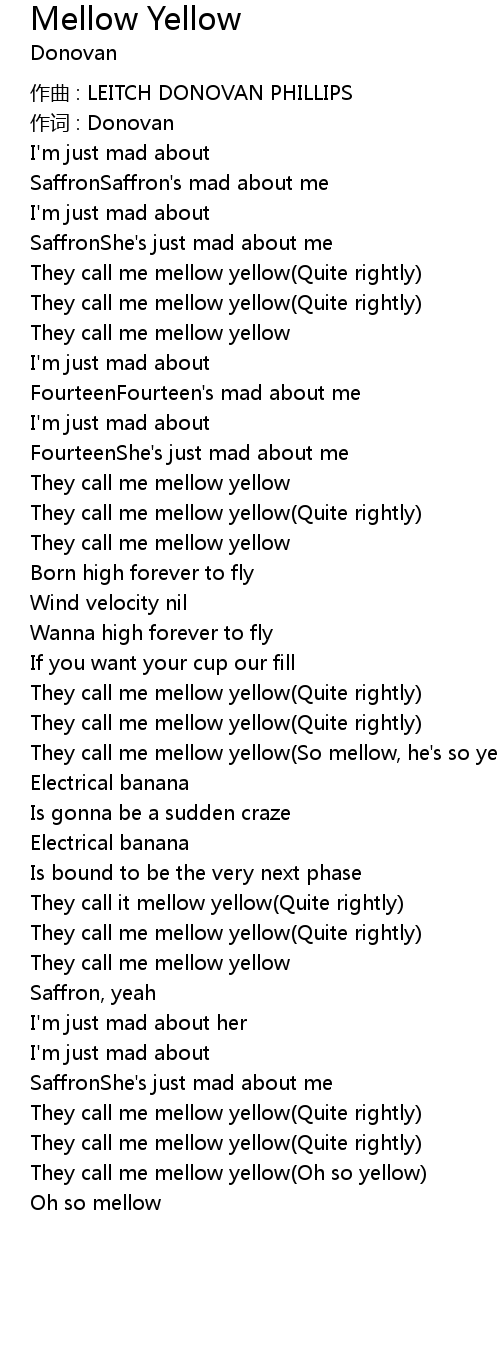 | They call me mellow yellow So mellow, he' s so yellow | |