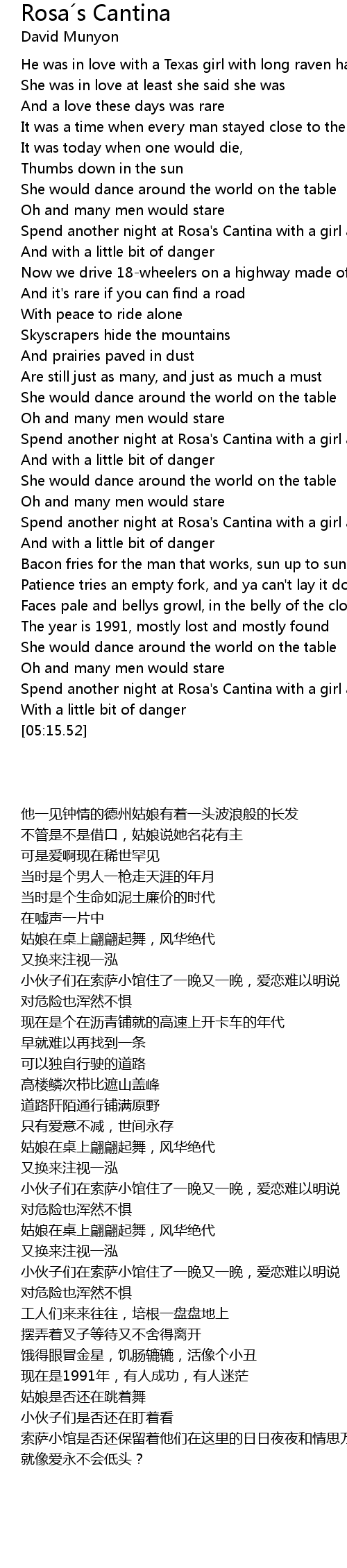 [04:59.41] Spend another night at Rosa's Cantina with a girl and love,