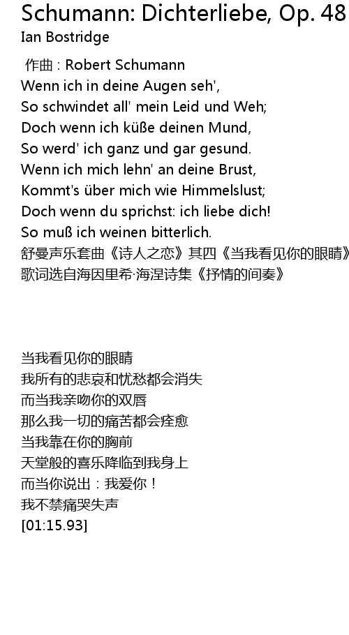| [01:15.93] | 舒曼声乐套曲《诗人之恋》其四《当我看见你的眼睛》 |