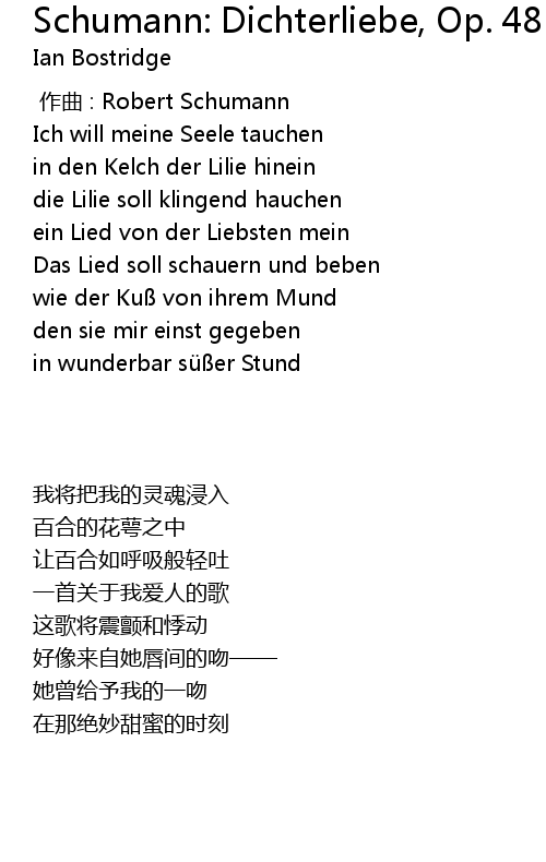 | Song | Schumann: Dichterliebe, Op. 48 - 5. Ich Will Meine Seele Tauchen |