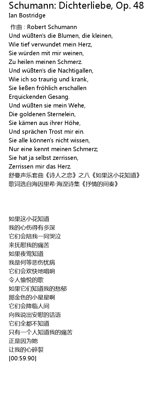 | [00:59.90] | 舒曼声乐套曲《诗人之恋》之八《如果这小花知道》 |