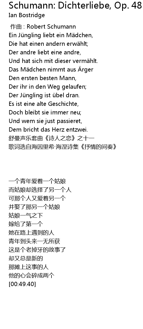 | [00:49.40] | 舒曼声乐套曲《诗人之恋》之十一 |
