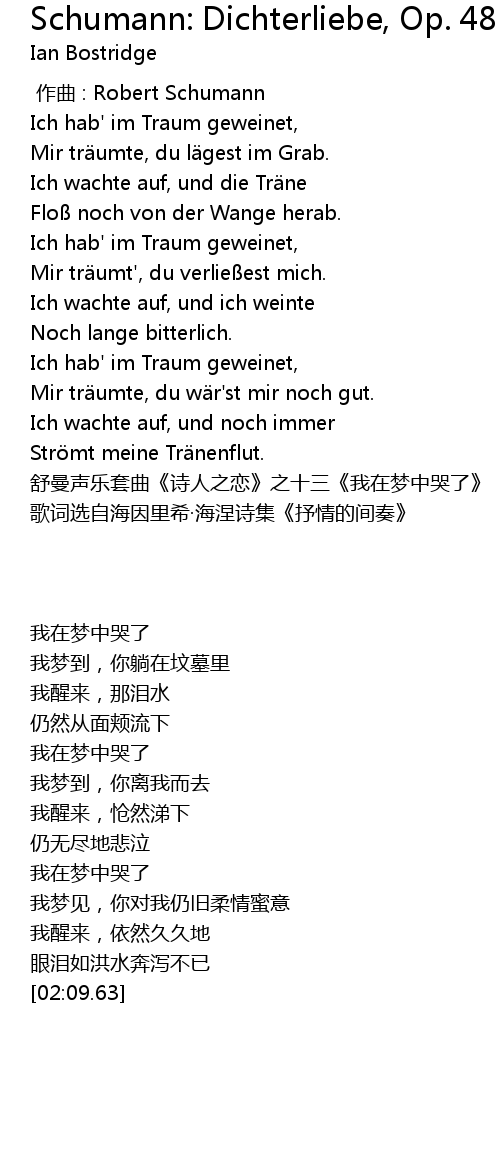| [02:09.63] | 舒曼声乐套曲《诗人之恋》之十三《我在梦中哭了》 |