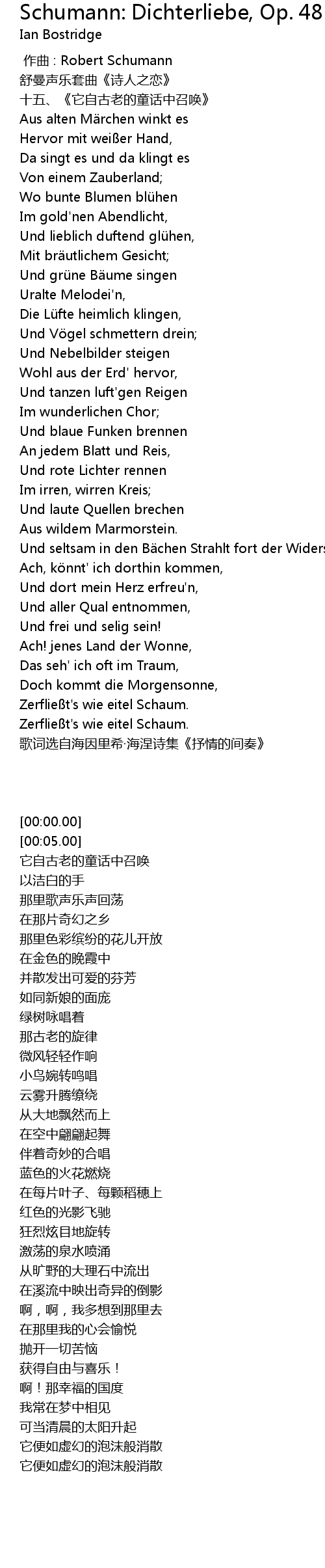 | [02:09.38] | 歌词选自海因里希·海涅诗集《抒情的间奏》 |