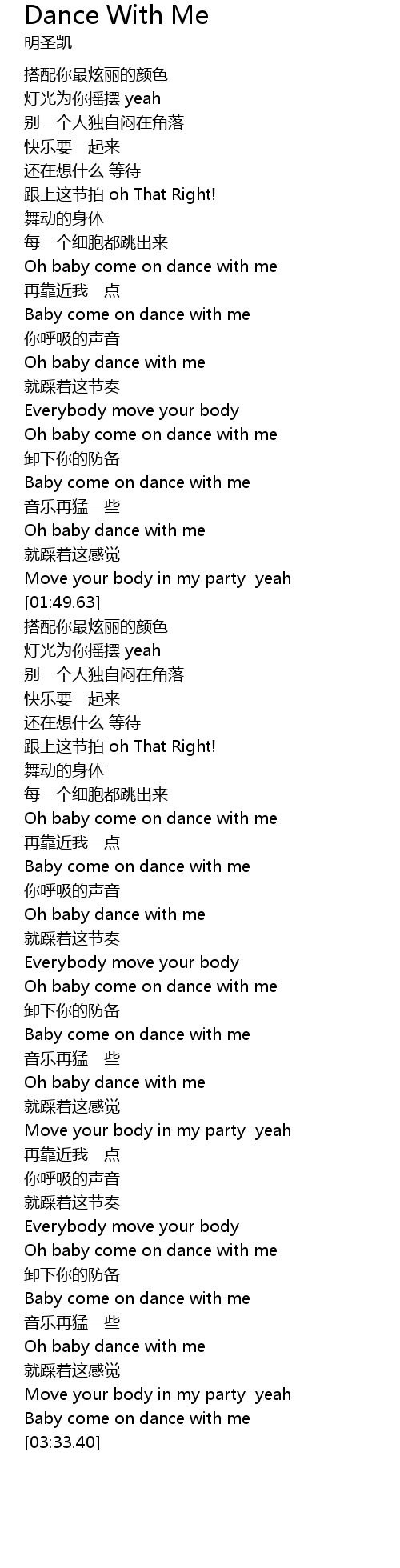 | [03:31.34] | Baby come on dance with me |