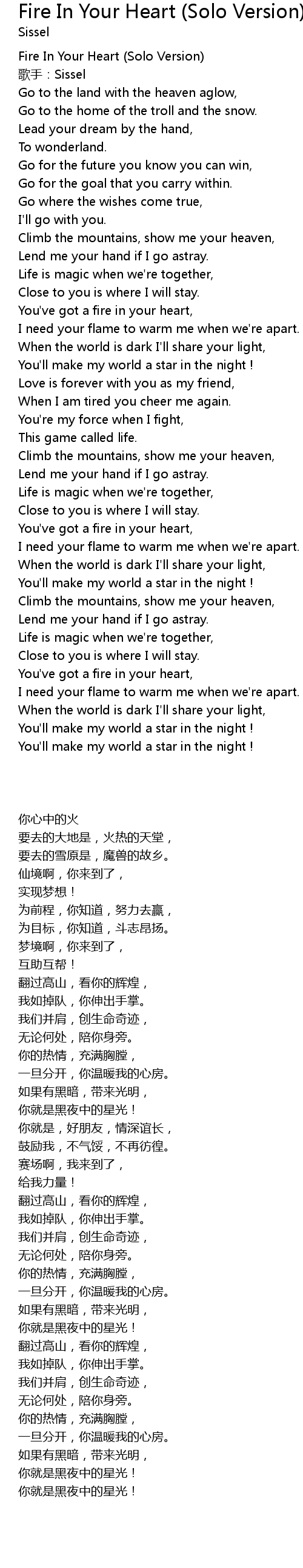 | [00:02.93] | Fire In Your Heart (Solo Version) |