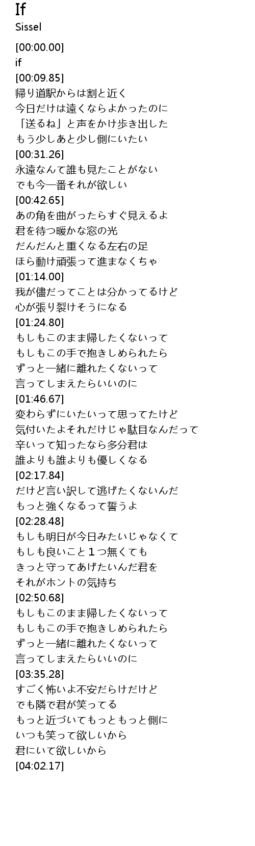 | [03:46.25] | もっと近づいてもっともっと側に |