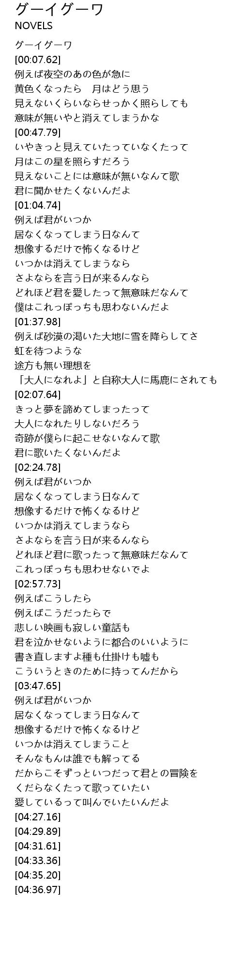 | [01:00.72] | 君に聞かせたくないんだよ |