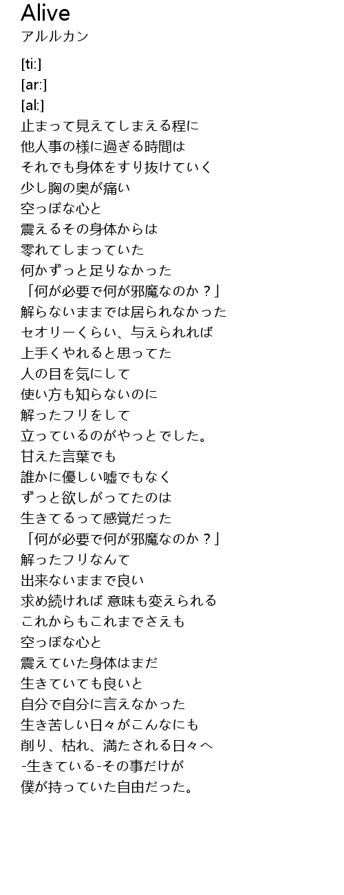 | [01:42.25] | 生きてるって感覚だった |