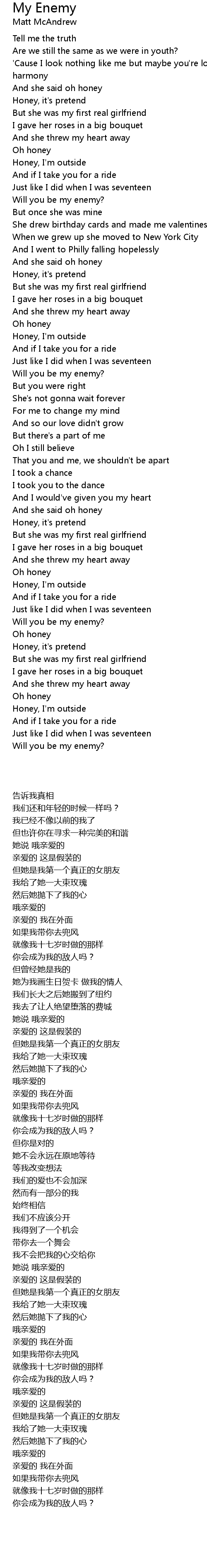 Will you be my enemy? |