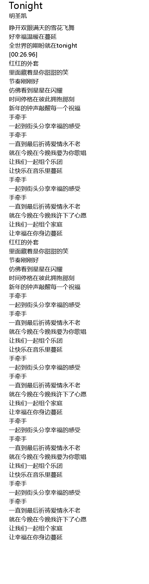 | [00:23.16] | 全世界的期盼就在tonight |