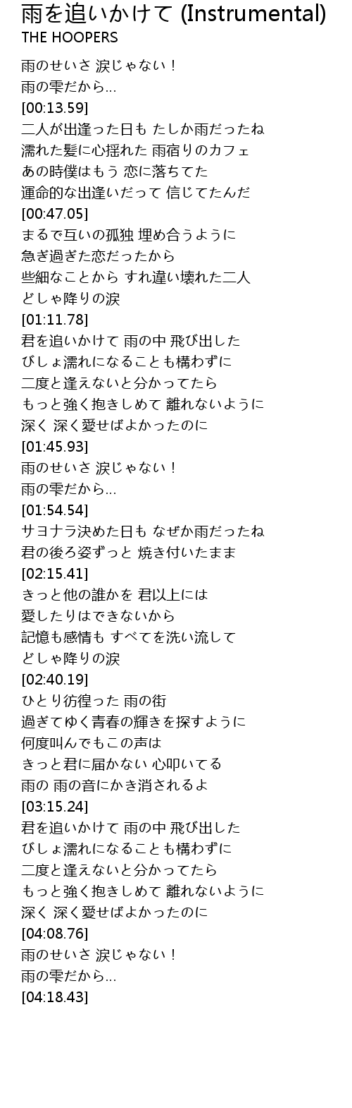 | [04:09.04] | 雨のせいさ 涙じゃない! |