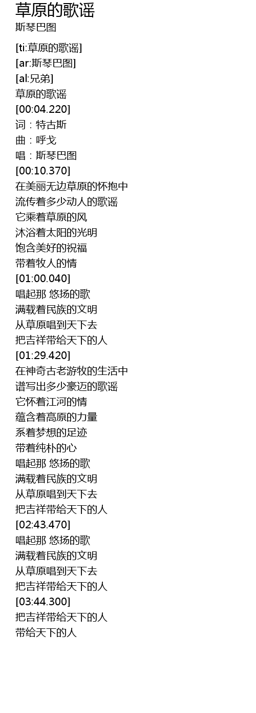 | [03:30.040] | 从草原唱到天下去 |