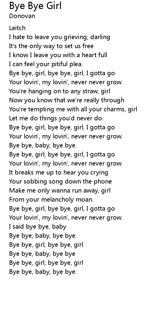 Bye Bye Girl Lyrics