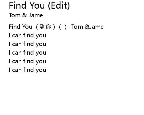 | [00:00.00] | Find You (到你)()-Tom &Jame |