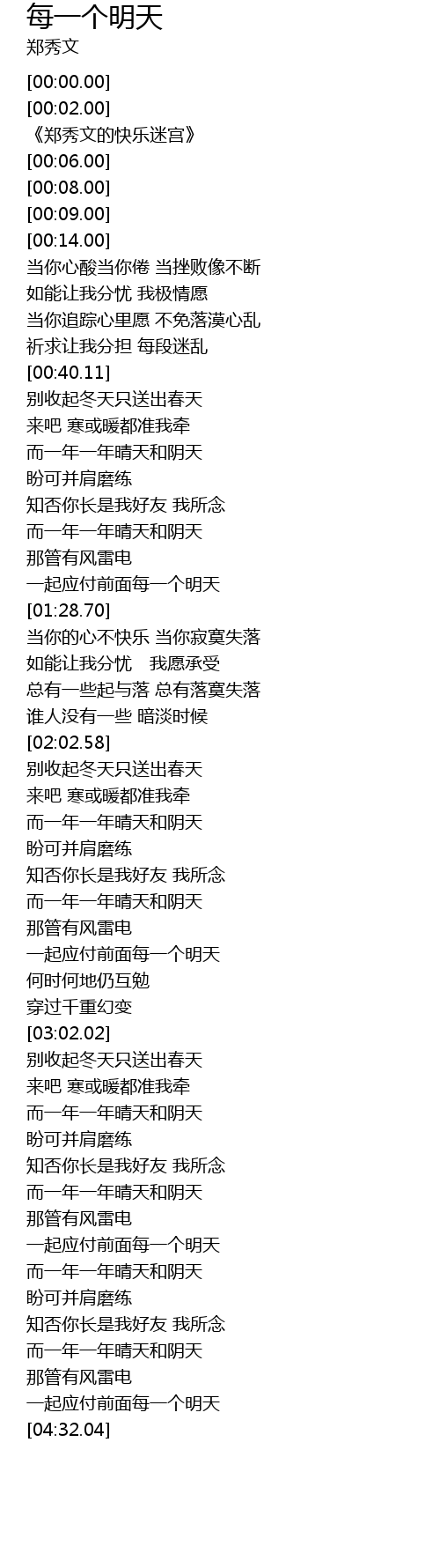 | [00:04.00] | 《郑秀文的快乐迷宫》 |