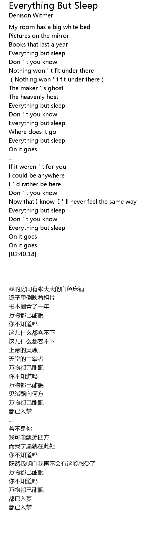 | [00:40.33] | Everything but sleep |