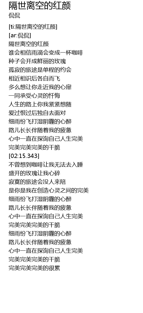 | [04:22.202] | wán měi wán měi wán měi dí hěn lèi |