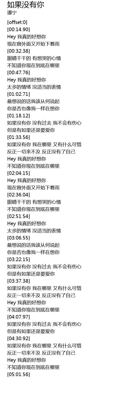 | [01:35.00] | rú guǒ méi yǒu nǐ wǒ zài nǎ lǐ yòu yǒu shén me kě xī |