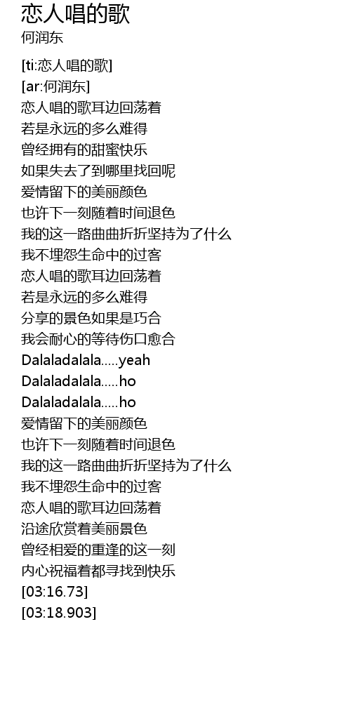 | [02:48.735] | 恋人唱的歌耳边回荡着 |