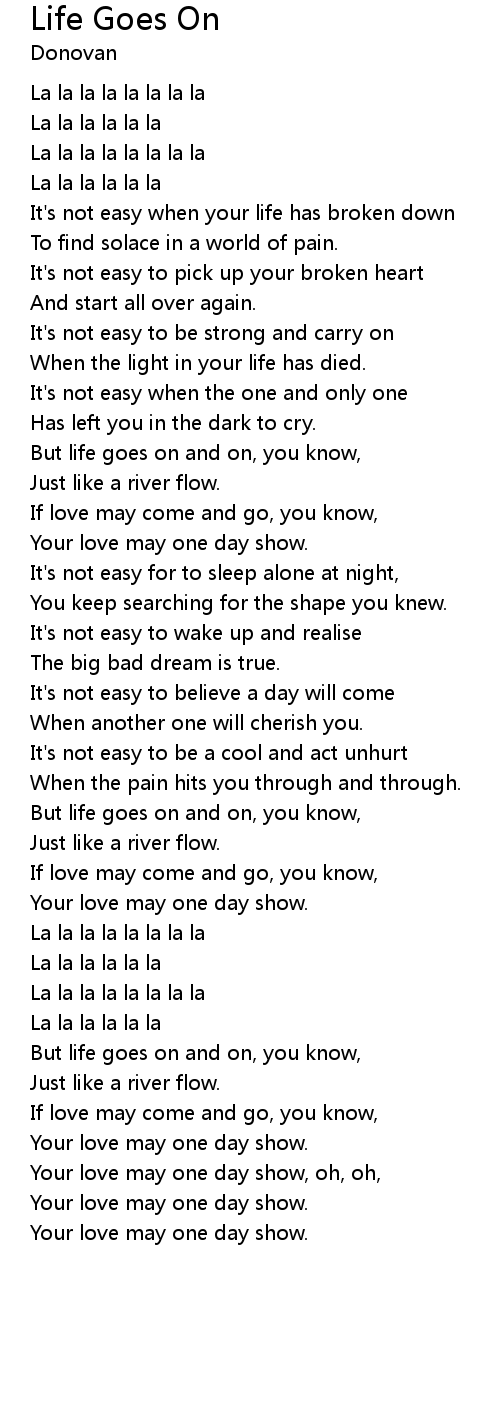 But life goes on and on, you know, |