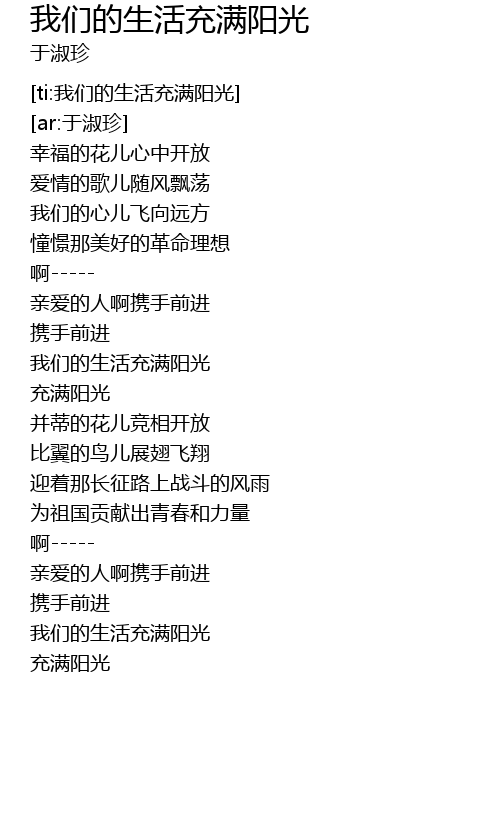| [01:12.690] | wǒ men de shēng huó chōng mǎn yáng guāng |