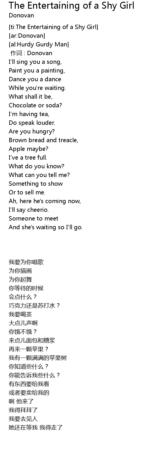 | [ti:The Entertaining of a Shy Girl] | |