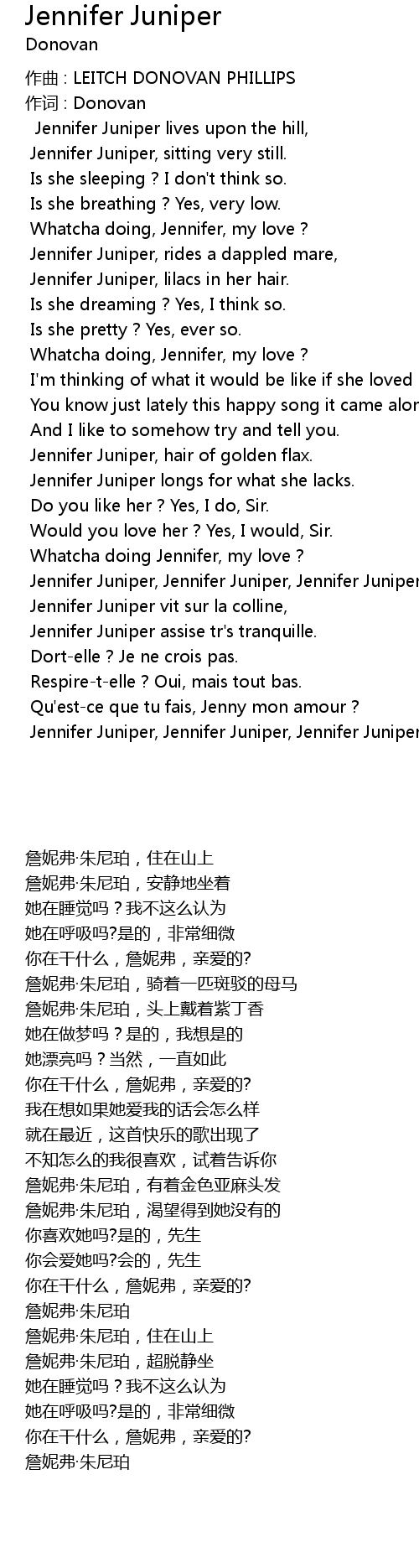 | Jennifer Juniper, Jennifer Juniper, Jennifer Juniper. |