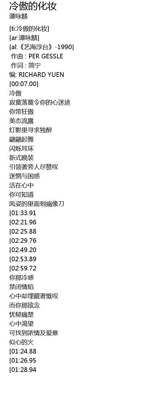 | [02:20.40][01:33.91][00:51.01] | 冷傲 |