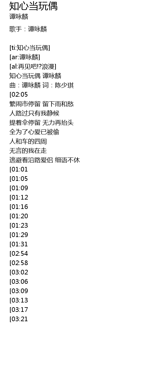 | [00:00] | 知心当玩偶 谭咏麟 |