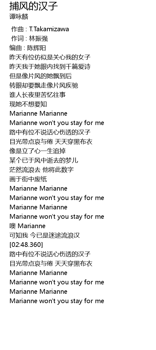 | [02:56.710] | 目光带点哀与倦 天天穿黑布衣 |
