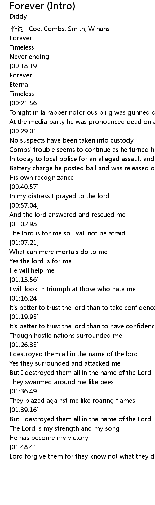 | [00:00.00] | 作词 : Coe, Combs, Smith, Winans |