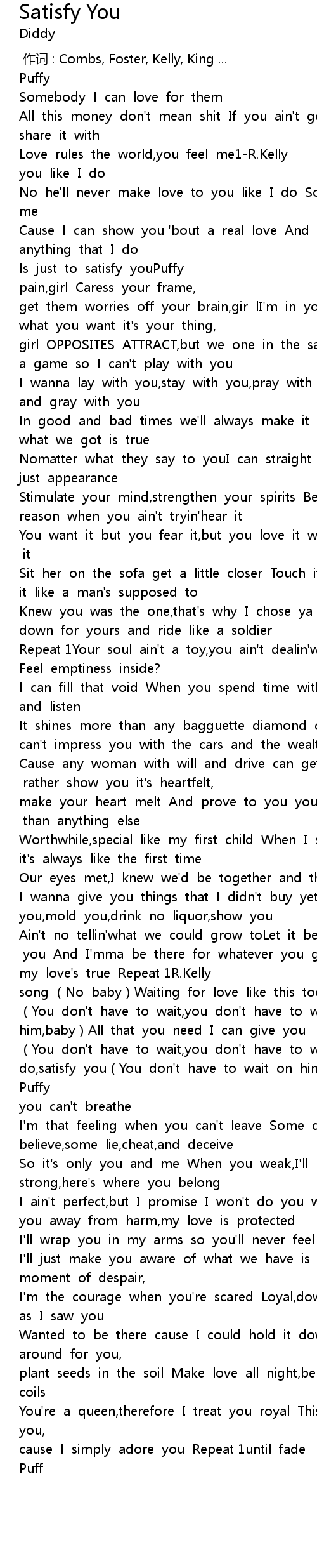 | [00:00.00] | 作词 : Combs, Foster, Kelly, King ... |