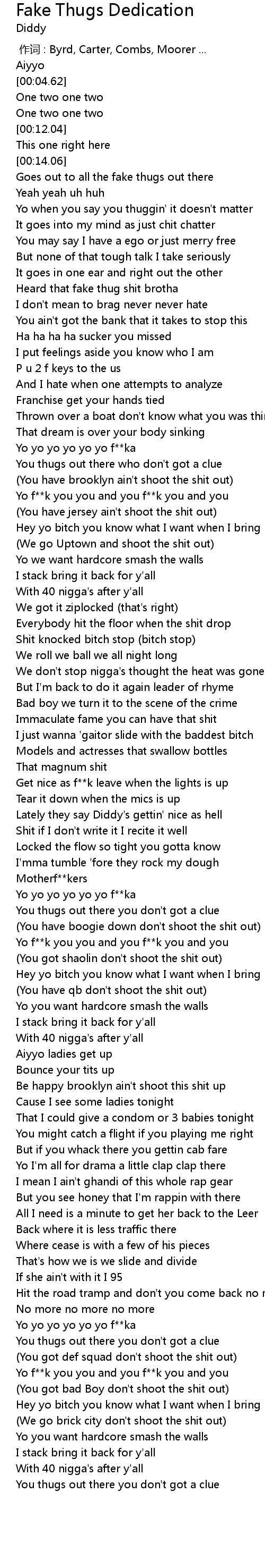 | [00:14.61] | Goes out to all the fake thugs out there |
