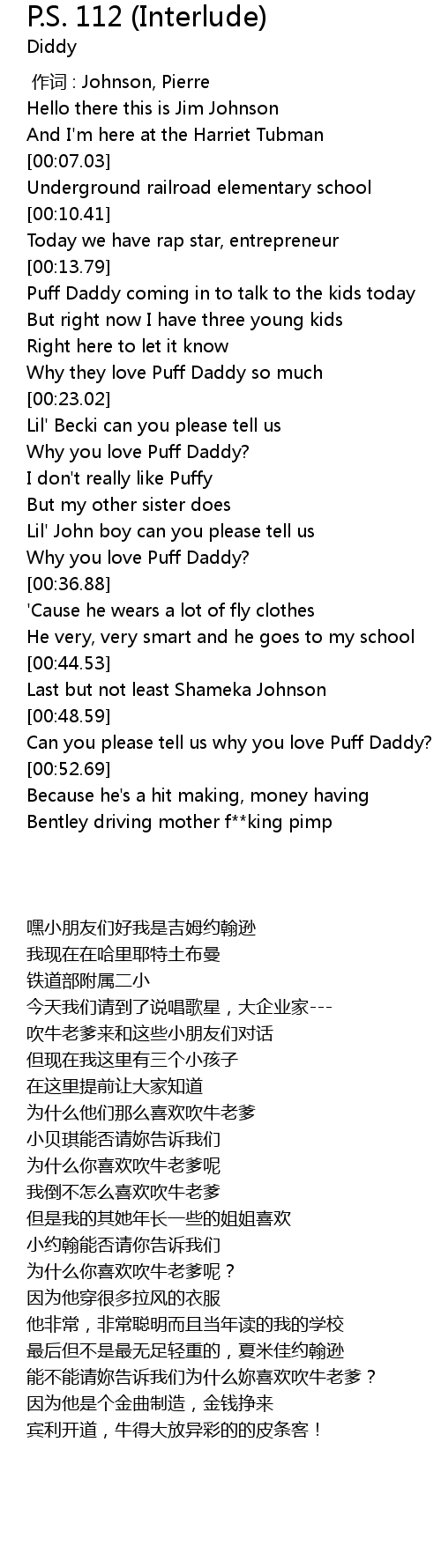 | [00:34.88] | Why you love Puff Daddy? |