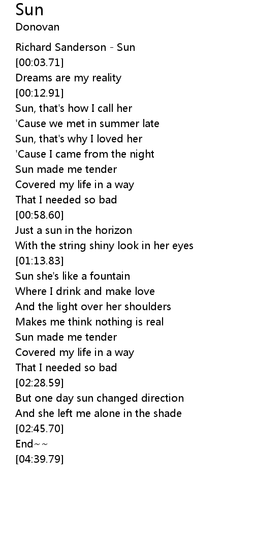 Sun, that's why I loved her |
