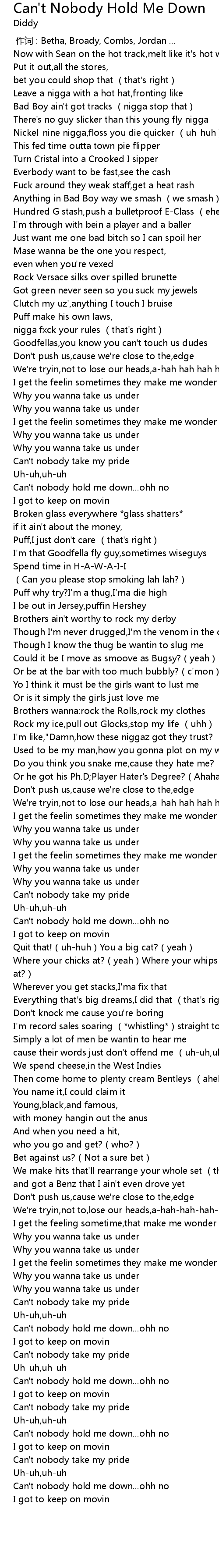 | [04:09.111] | Can't nobody hold me down...ohh no |