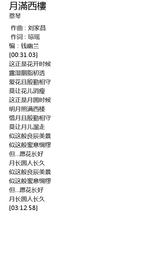 | [01:11.29] | míng yuè zhào mǎn xī lóu |