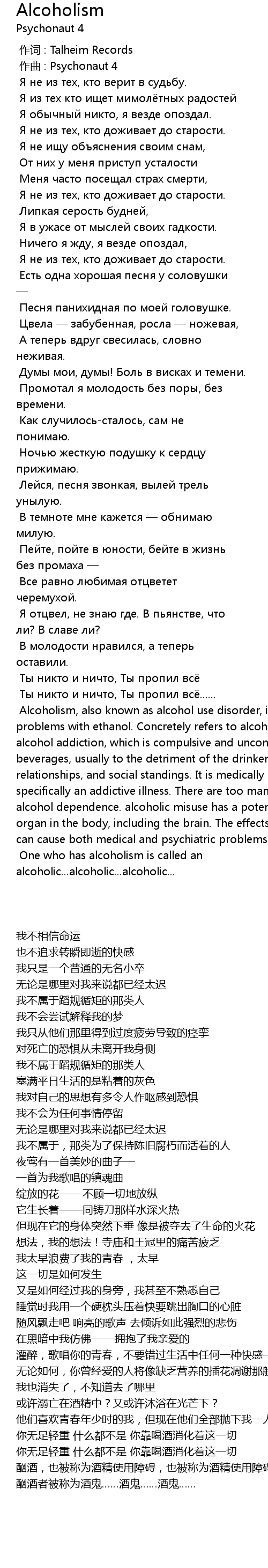 | Song | Alcoholism |