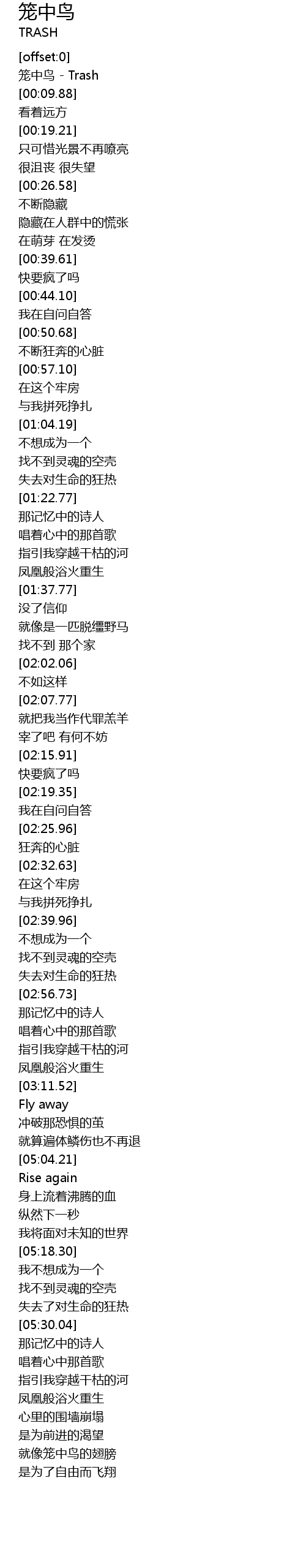 | [00:01.82] | lóng zhōng niǎo Trash |