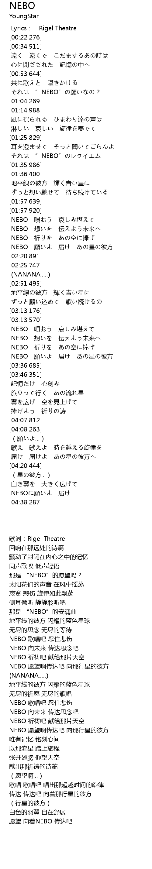 | [02:14.943] | NEBO 願いよ 届け あの星の彼方 |