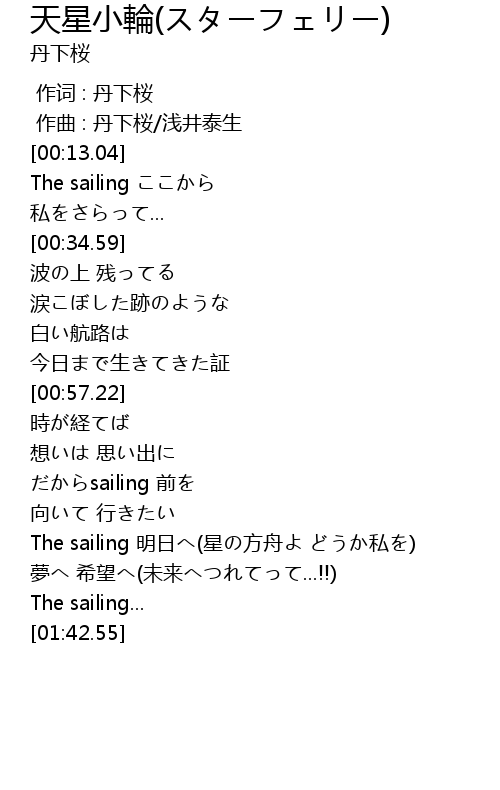 | [00:14.17] | The sailing ここから |