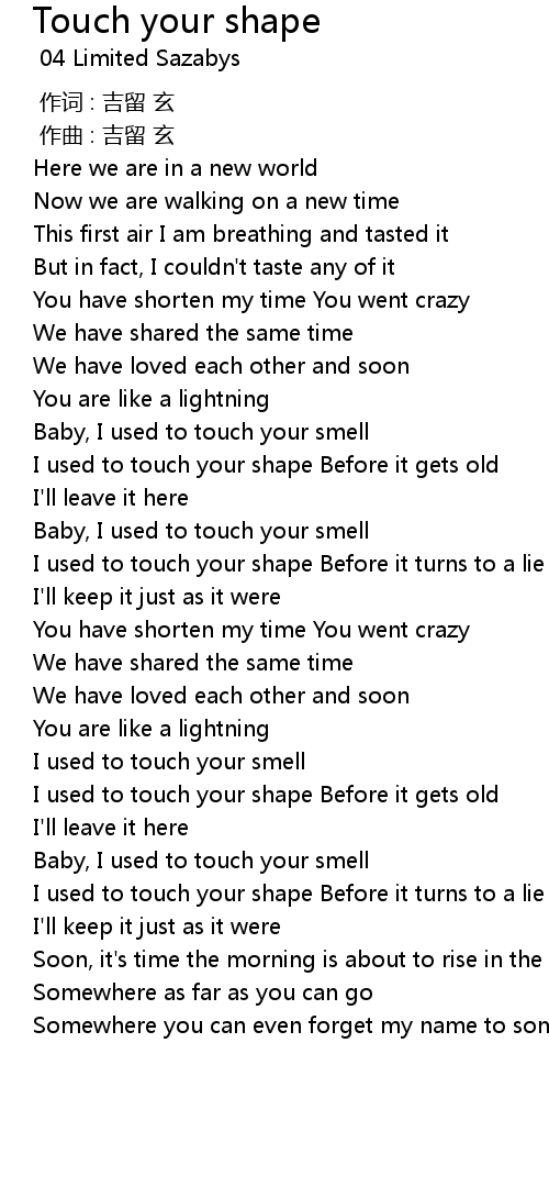 | [00:59.00] | I used to touch your shape Before it gets old |