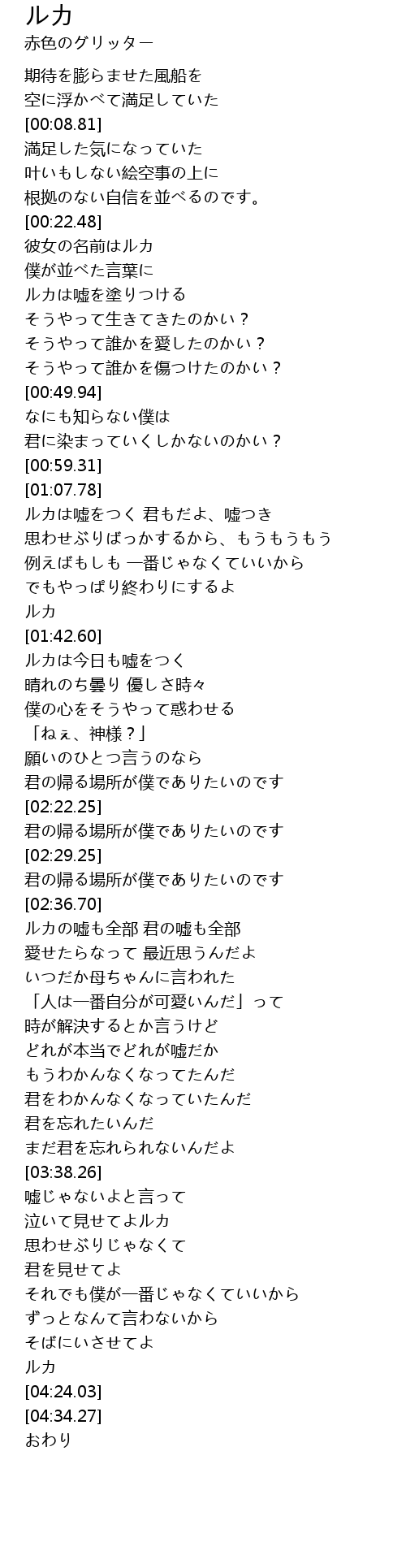 | [00:34.69] | ルカは嘘を塗りつける |
