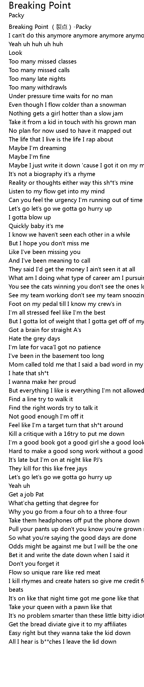 | [00:00.00] | Breaking Point liè diǎn Packy |