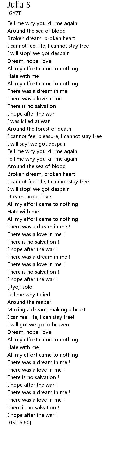 | [00:58.31] | I cannot feel life, I cannot stay free |