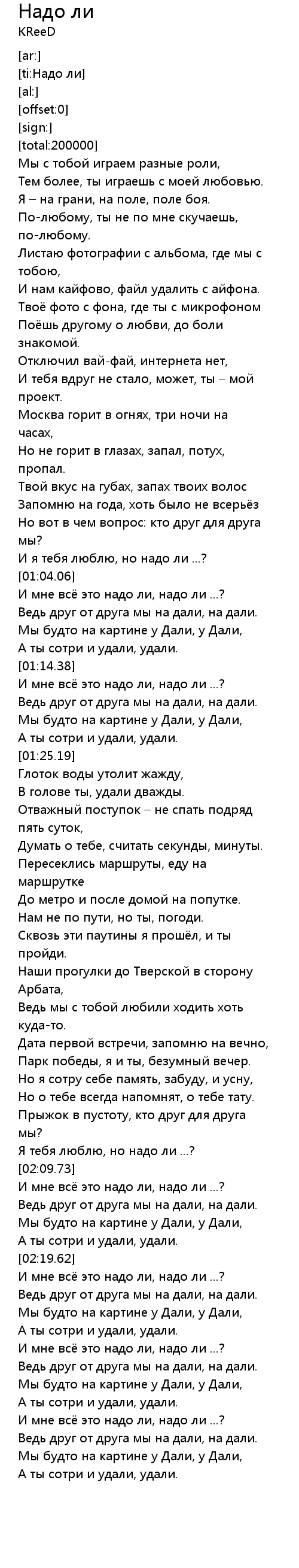 [03:04.11] И мне всё это надо ли, надо ли ...?