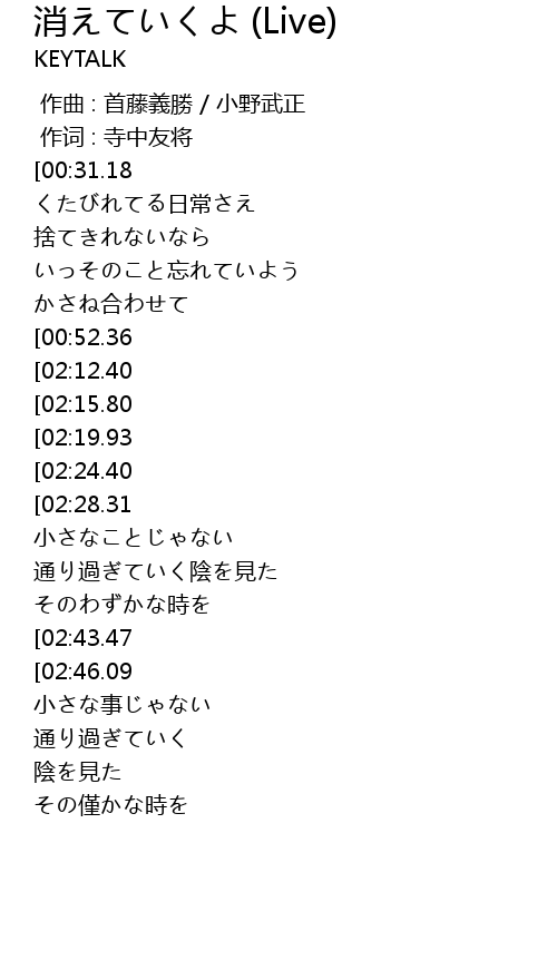 | [00:46.65][00:52.36] | 消えていくよ |